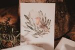 Piękna zimowa kartka przedstawiająca rudzika wśród jemioły. Jej rewers pomieści najpiękniejsze życzenia, podziękowania lub osobiste dedykacje. To idealny dodatek do prezentu lub samodzielny, pełen ciepła gest w świątecznym okresie.